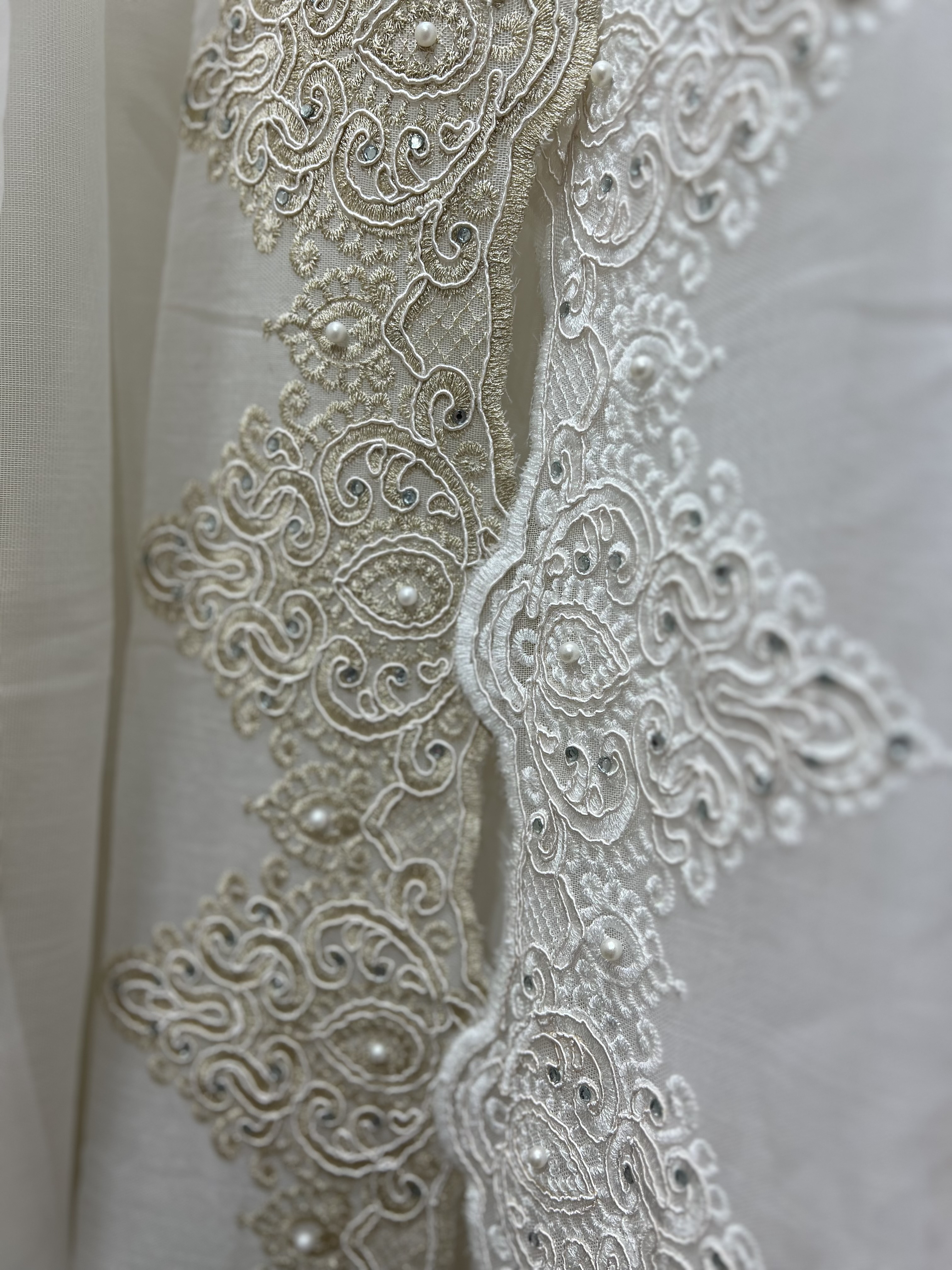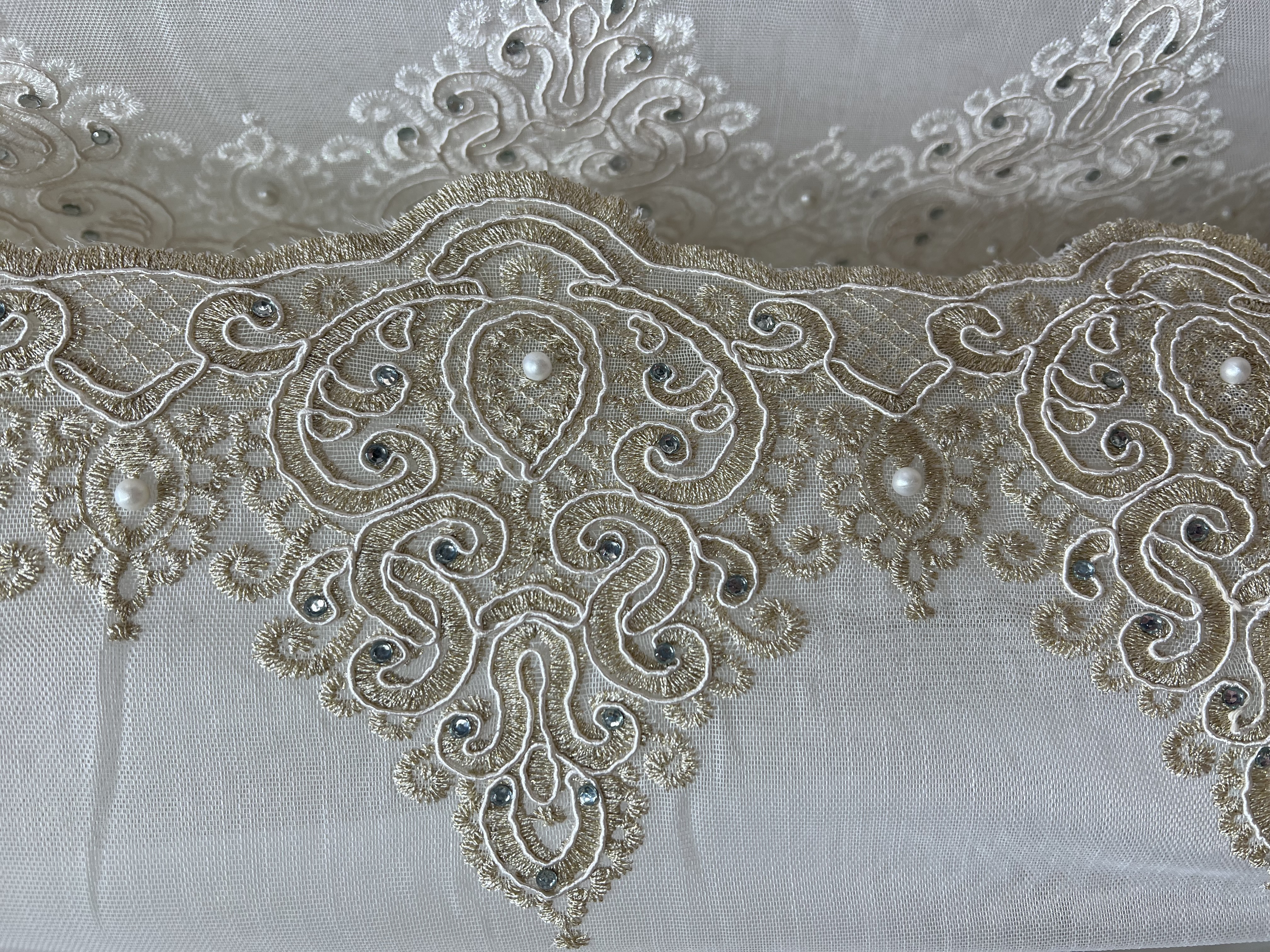 تورهای لبه حاشیه نگین دوزی و مروارید دوزی شده دو رنگ